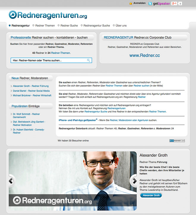 Redneragenturen.org - Katalog für Redner, Moderatoren, Gastredner und Referenten